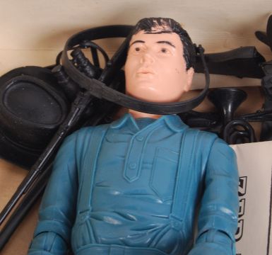 A rare original vintage Marx Toys Fort Apache Fighters action figure of ' Zeb Zachary .' Appears complete, within the original box. With instructions.