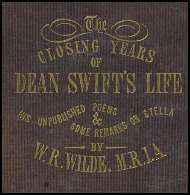 The Closing Years Of Dean Swift's Life; with Remarks on Stella. Wilde, William R. First edition. Pub; Hodges & Smith, Dublin. Contains correspondence in the form of letters during the 1960's where the book was used to compile an article for a medial journal. Rare. Measures: 24cm high.