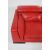 A contemporary red leather Italian sofa raised on strap chrome work legs and exterior frame, the deep sofa with re red stitched leather having adjustable head rests. Measures 75cm x 180cm x 110cm