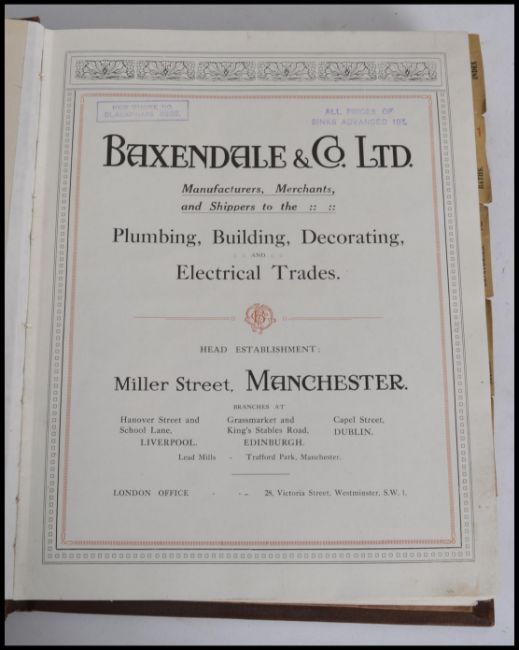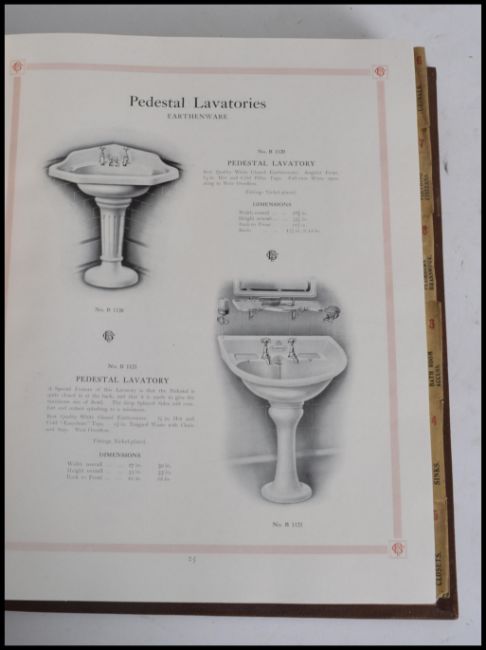 An original vintage Baxendale & Co of Manchester ' Catalogue of Baths, Lavatories, Sinks, Sanitary Ware and Appliances For The Plumbing & Decorating Trades .' Large brown volume. Social interest. Measures: 33cm high.