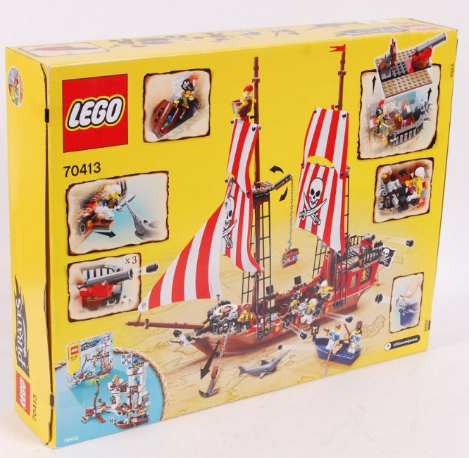 A Lego Pirates set 70413 ' The Brick Bounty ' Pirate ship. Featuring firing cannons, 7x Pirates minifigures, hidden treasure and many other features.
