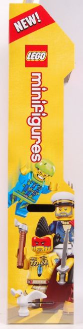 A Lego Minifigures Series 10 large cardboard shop display point of sale advertising stand with large fixable minifigure to top. Measures approx 99 cm tall. Within its original Lego packing box.