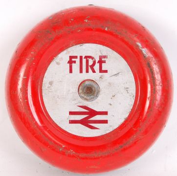 An original 1990's British Railways red fire bell with logo to front. Measures approx 13cm diameter.