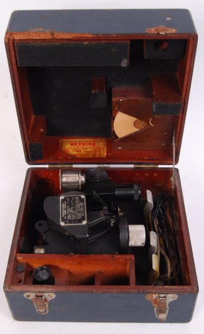An original 20th century US made Army Air Corps navigational sextant. Within its original wooden box. Various makers marks and plaques to the instrument.
