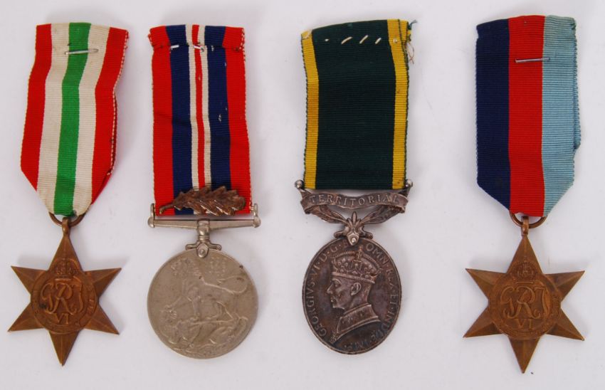 An original WWII Second World War medal group belonging to a 2587909 Sjt GH Lee, Royal Signals. To include Territorial Efficiency Medal, War Medal, 39-45 Star, and Italy Star.
