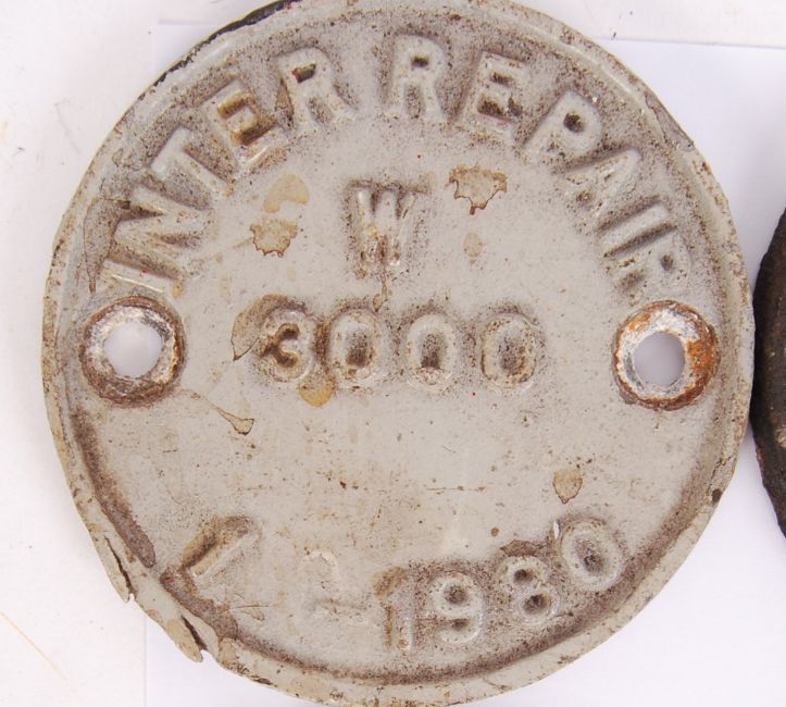 A collection of 6x 1970's/ 1980's British Rail locomotive 'Inter Repair' cast iron wagon plaques with code & dates to front. Measures approx 10cm in diameter.