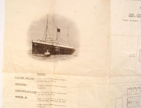 An original vintage 1920's RMS Megantic White Star Line ' Plan of Cabin Accommodation ' pamphlet / poster. Printed on paper, the plan opens up to reveal a large and detailed inner map of the accommodation aboard the Megantic, including detailed depictions of the Promenade Deck, A Deck and B Deck etc. Information regards the ship can be found printed on the top pane, including weight, length and breadth. The White Star Line burgee and a printed image of the ship are to each corner. Measures approx 58cm x 82cm when opened. Likely unused. No rips, some crumpling from storage. Obtained from a Scottish travel agents in the 1920's.
