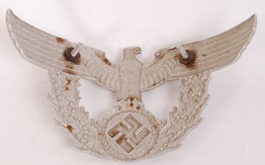 An original WWII Second World War era Nazi Germany Third Reich uniform cap badge emblem from a Shako Police officers cap / hat. Approx 16cm wide.