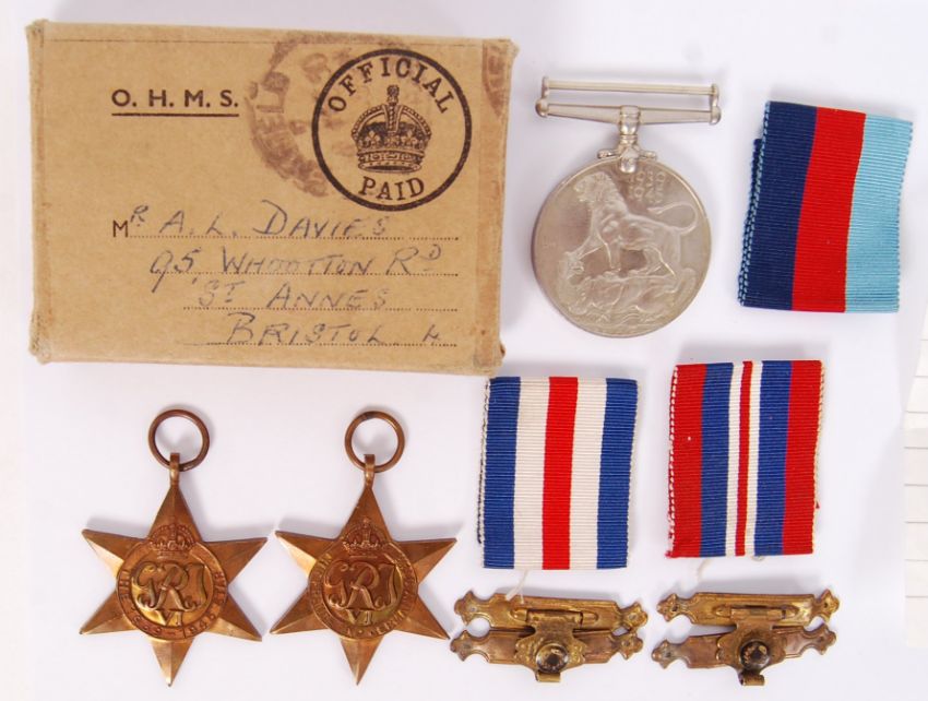 An original British Second World War WWII medal group belong to Private Reginald James Davies 5680435 comprising of; 1939-1945 war medal, The 1939-1945 Star & The France & Germany Star. With ribbons & claps. Also to include information about Private Davies & his death.