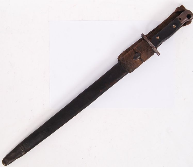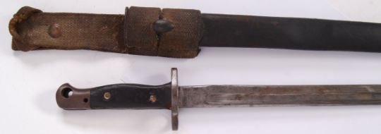 An original British First World War WWI 1907 pattern bayonet within its original scabbard. Measures approx 58cm long.