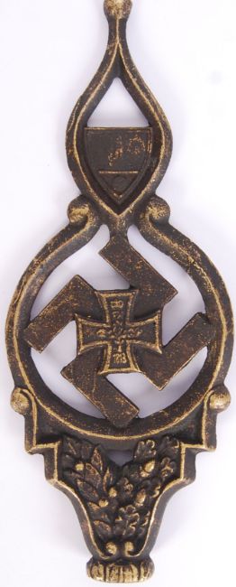 A 20th century Nazi Third Reich Kyffhäuserbund ' The Veteran's Association ' cast bronze flagpole topper with Swastika & Iron Cross to centre & Lighthouse Shield to top with NS-RKB logo. Measures approx 25cm tall.