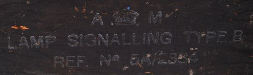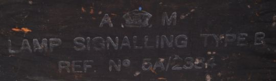 An original WWII Second World War Naval / Admiralty ' Aldis Lamp No. 4 ' electric light. Within its original box, with naval notation to the front. Leather carry handle to top.