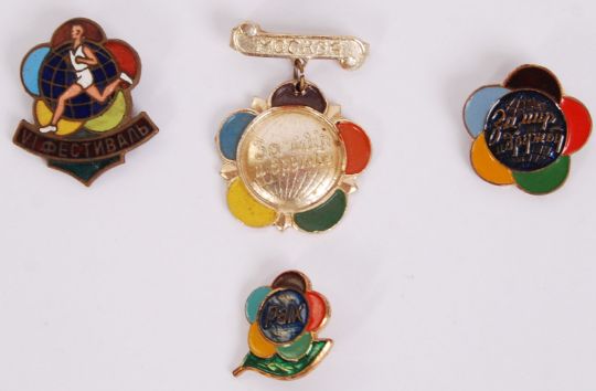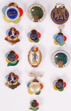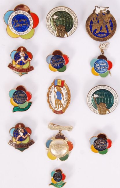 A collection of 13x original vintage Soviet Union & communist enamel World Festival of Youth & Students sports event pin badges to include; 2x 1955 Warsaw, 6x various sized 1957 Moscow, 1951 Berlin, East Germany, 1955 Romanian Team & 2x VIфectивдпЬ athletic runner badges.  The World Festival of Youth & Students was a sports competition between student unions of various Soviet & communist countries. The event still continues today which promotes hard left communism & socialist ideologies.