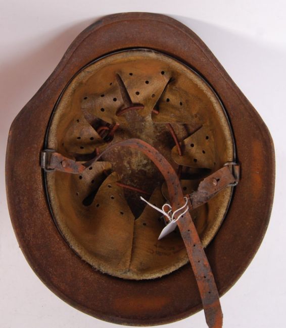 A WWII Second World War Nazi German Third Reich SS style military uniform helmet. Rusty, with decals worn. Appears to have a replacement liner / restored. Impressed marks to rim of 3778. NOTE: From a private collection of German militaria comprising of both genuine and replica items. Where possible we have stated ‘original’ or ‘replica’ but buyers are strictly reminded to satisfy themselves prior to bidding as to authenticity / condition irrespective of the description.