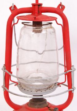 A vintage 20th century GPO General Post Office lamp with by A.W Sanderson Birmingham, 1933. Painted red & glass intact. Measures approx 43cm tall.