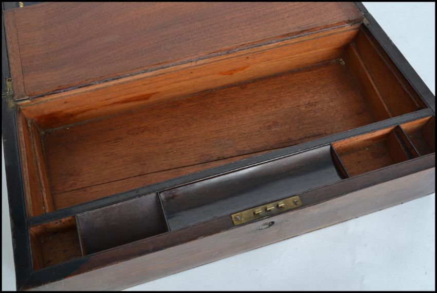A 19th century Victorian mahogany and brass bound writing slope, the slope having a fully appointed interior with campaign handles to the side.