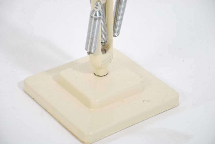 A vintage 1940's Herbert Terry model 1227 Industrial anglepoise desk lamp raised on twin square terraced base having pendant shade with original cream finish in very good condition. Measures 90cms high.