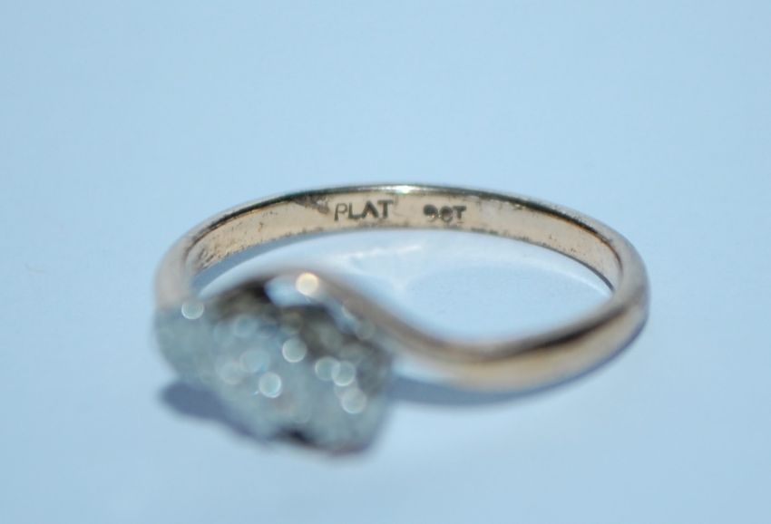 A hallmarked 9ct gold and platinum diamond three stone ring. Marked 9ct & Plat. Size N. Weight 2.2g.