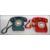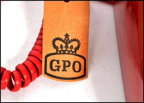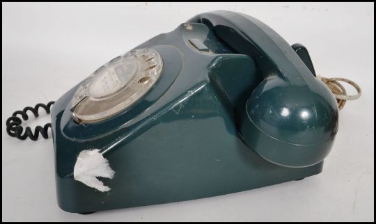 A pair of retro ring dial telephones dating from the 1960's in opposing colours one having a red colourway and the other being in a green colourway. Measures 26cm long (phone).
