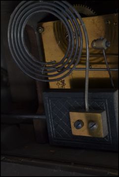 An oak mantel clock having dome top with a bevelled bezel and a silvered and gilt face, the clock is raised on bun feet and has a presentation plaque for 1898. The movement being 2 train