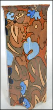 A 20th century Fredrick Rhead for Bursley Ware hexagonal vase decorated in the Amstel pattern depicting bird and butterflies having a flared rim raised on stub feet. Makers stamp to base.