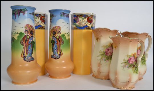 A collection of ceramics to include Haddon octagonal vases, 2 Staffordshire Chinese tapering vases  and a set of 3 graduating jugs.Measures:  28cm high