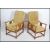 A pair of 1920's oak barleytwist fireside armchairs being raised on barleytwist legs united by stretchers having loose squab cushion seat and backs