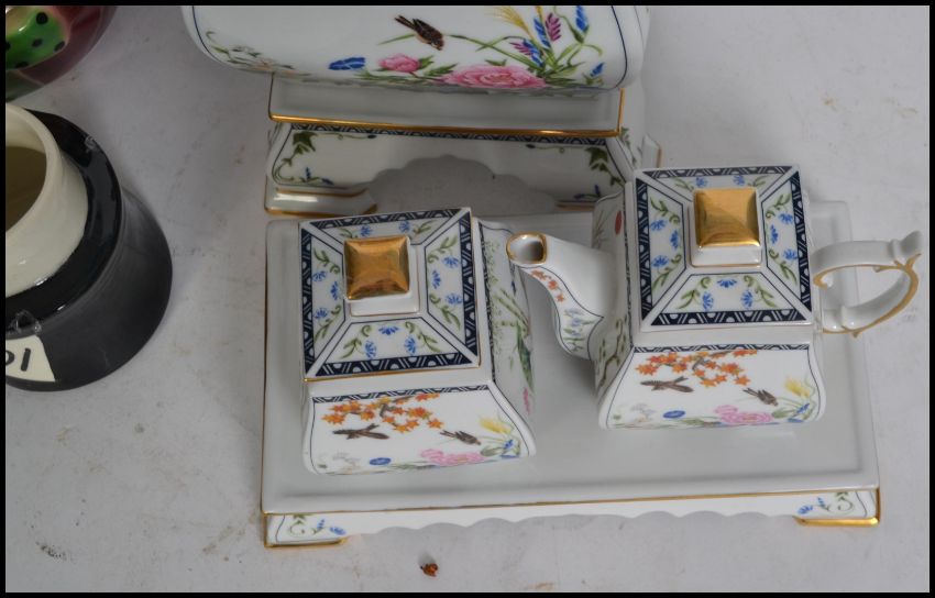 A collection of teapots to include examples such as  Franklin Mint Ltd edition teapot with creamer and stand, Tony Woods etc.Measures:  21cms wide.