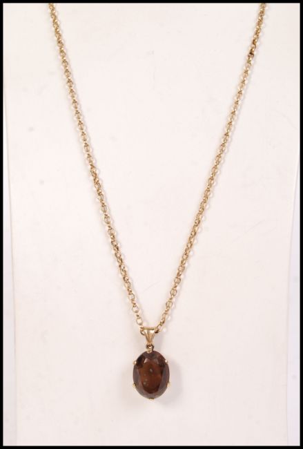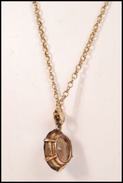 A stunning 9ct / 375 hallmarked citrine pendant and necklace chain. The oval citrine in hallmarked mounted set to a 9ct chain. Total weight 8.6g / Size 45cms
