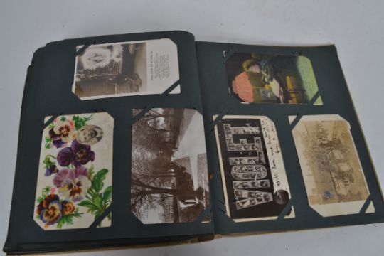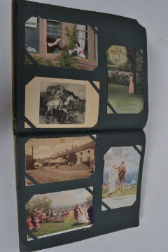 Vintage postcard album.Varied collection of old cards with transport, Social History - many real photos. Comic etc. Good lot of 400 cards.