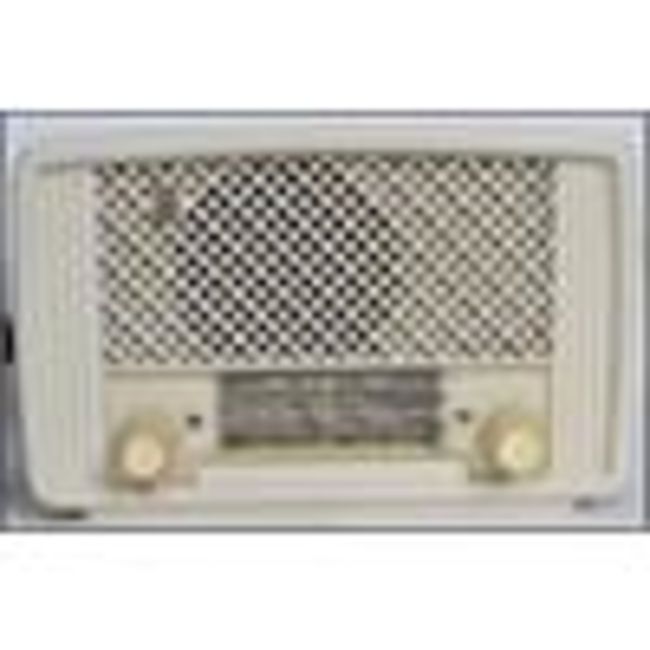 A vintage mid 20th century bakelite valve radio  model no M381A by Phillips together with a white bakelite valve radio Type 210 again by Phillips. Measures: 40cm wide.