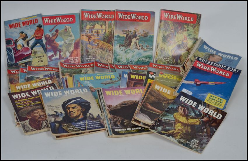 a collection of vintage mid century ' The Wide World ' The True Magazine For Men. Dating from 1960 covering many different subjects.