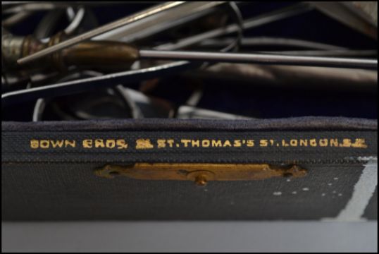 A collection of vintage doctors apparatus to include blood pressure monitor, Hypodermic needles etc please see images.