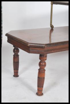 A collection of Victorian and other furniture to include a Victorian mahogany coffee table, a brass and leather tea trolley and an Edwardian inlaid games table with swivel top raised on square legs.