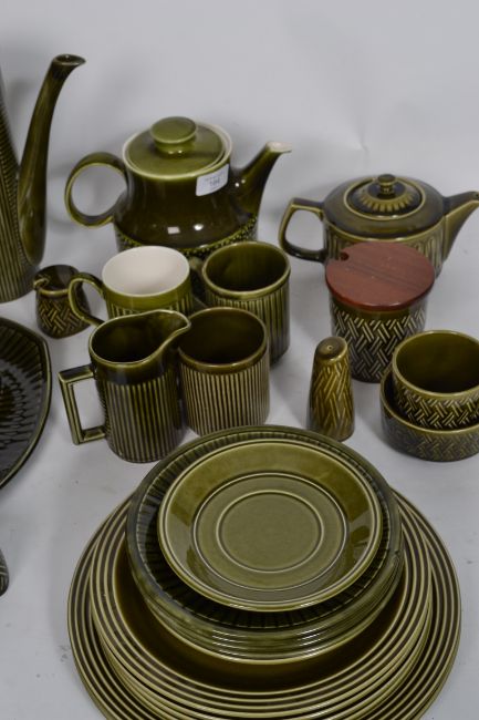 A collection of vintage retro 20th century ceramics by various makers, all finished with a green glaze to include Sylvac