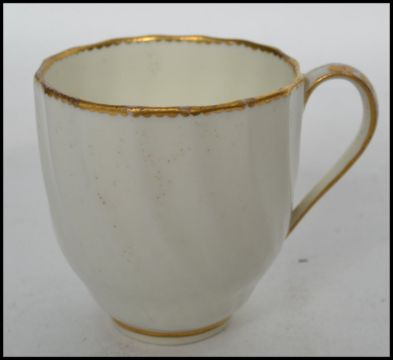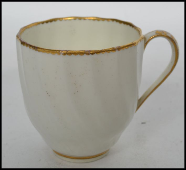 An 18th / 19th century Royal Crown Derby Regency cup and saucer having a plain white design with gilt detailing bearing Nottingham Road Derby puce marks believed 1782-1800. Along with another Victorian pink and white cup and saucer and matching cup with marks to base.