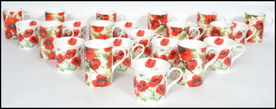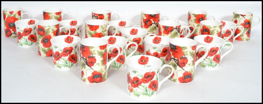 A good group of ceramic twelve coffee cups and 10 tea cups all with poppy flower design. Makers stamps to base.