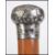 A continental hallmarked silver topped malacca walking stick / cane, with scroll work detail to the knop.