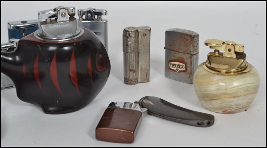 A collection of vintage lighters and table lighters to include Embassy, Polo, Sim, Calibri Molelectric, Ronson, Rolstar, etc.