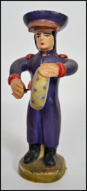 A 20th century retro vintage clay work South American nine piece marching band, the band playing different instruments and all wearing matching uniform.