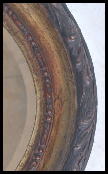 A Victorian oval wall hanging mirror having a worked edge and acanthus leaf detailing,