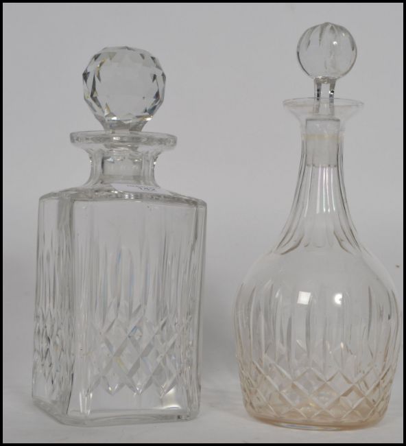 Two early 20th century ( circa 1930's ) Edinburgh Crystal cut glass crystal decanters with stoppers, both acid etched to base.
