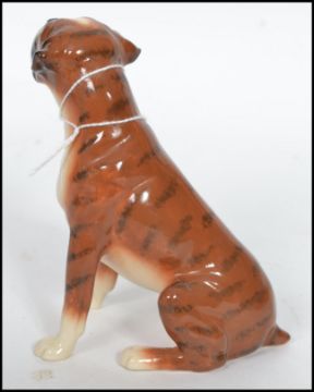 A vintage John Beswick ceramic figurine of a seated bulldog in the Crindle colourway being stamped to base John Beswick.