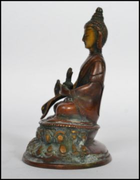 A believed 19th century Oriental bronze figurine of Buddha in the lotus position raised on a detailed plinth base.