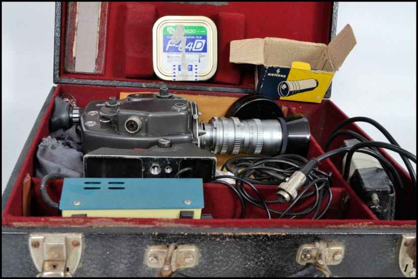 A vintage original early 20th century Beaulieu cine camera complete in the original case being marked to the camera itself