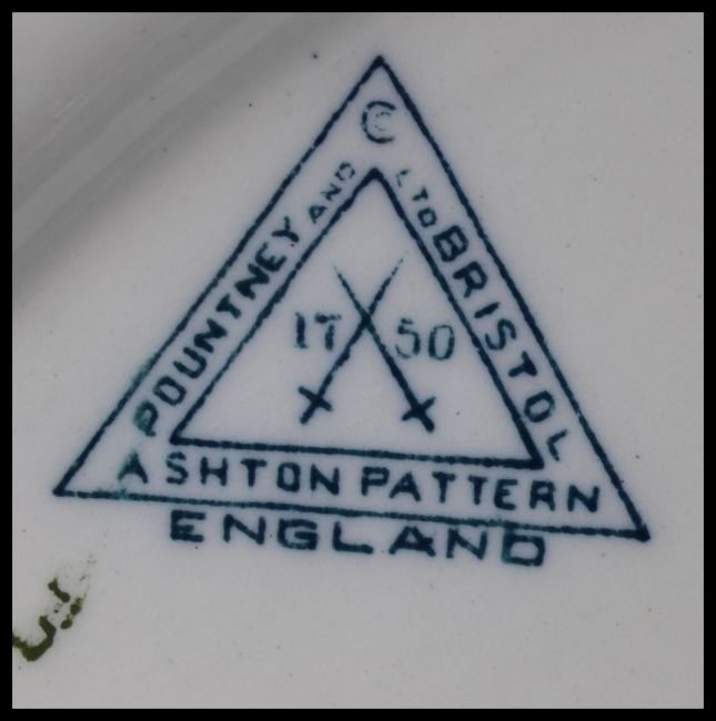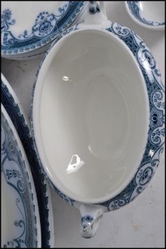 A 19th century Bristol Pountney blue and white part dinner service to include large and small tureens, 2 large meat platters and a series of dinner plates. Stamed to the rear.Measures:  46cm wide.