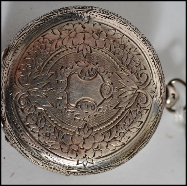 A group of hallmarked silver items to include a ladies enamelled face pocket watch having faceted hands with a Roman numeral chapter ring, hallmarked for Birmingham 46833, along with a silver hallmarked letter opener with shaped blade and ring handle and a silver white metal toothpick of column form having an purple stone to stop. Measures 12cms long.