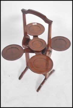 A 1920's solid mahogany 4 tier metamorphic cake stand in the manner of 'monoplane' with plaque for fyne ladye furniture