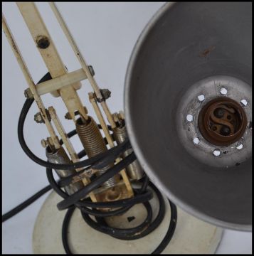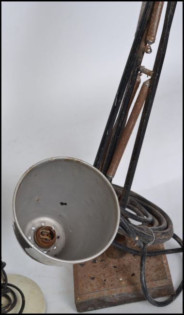 A retro mid century Herbert Terry anglepoise lamp on a circular base with conical shade together with another vintage anglepoise lamp on a square cast metal base.