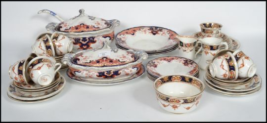 An Imari pattern 19th century part dinner service to include tureens and dinner plates etc together with a Royal Albert Imari pattern part tea service comprising cups, saucers, plates etc